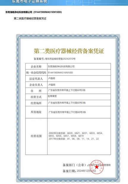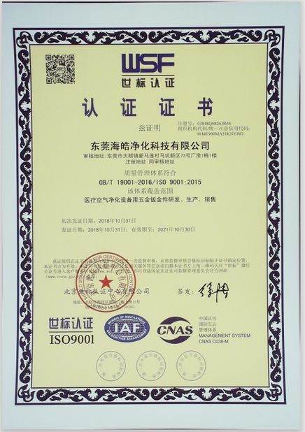 Dongguan Haihao Clean Technology Co., Ltd. Certifications