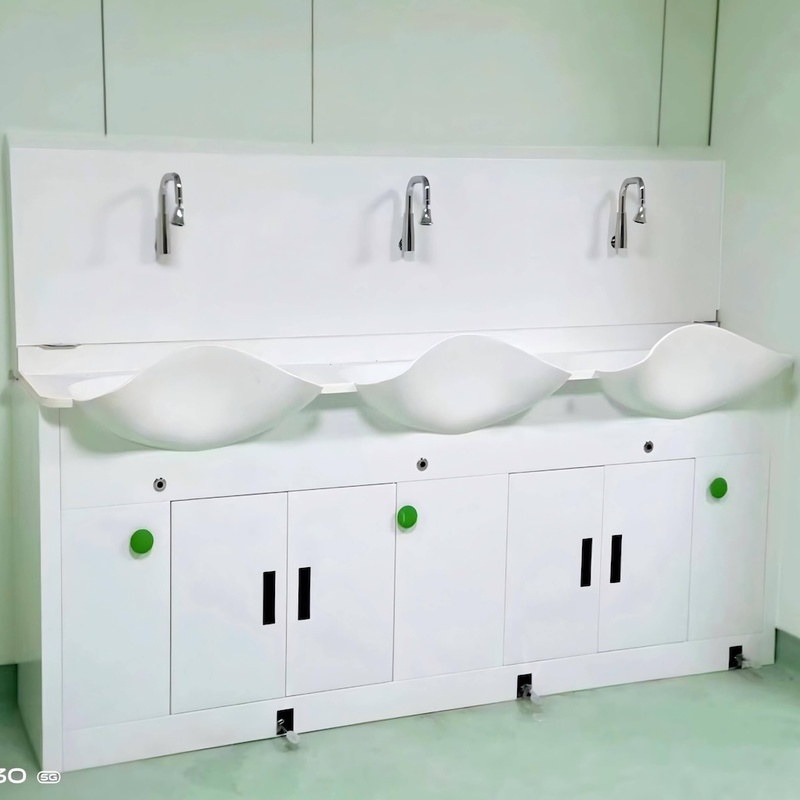Ergonomic Design Options: Available in multiple configurations, including monolithic straight models and wave-shaped basin types, tailored for both single and multi-user applications.